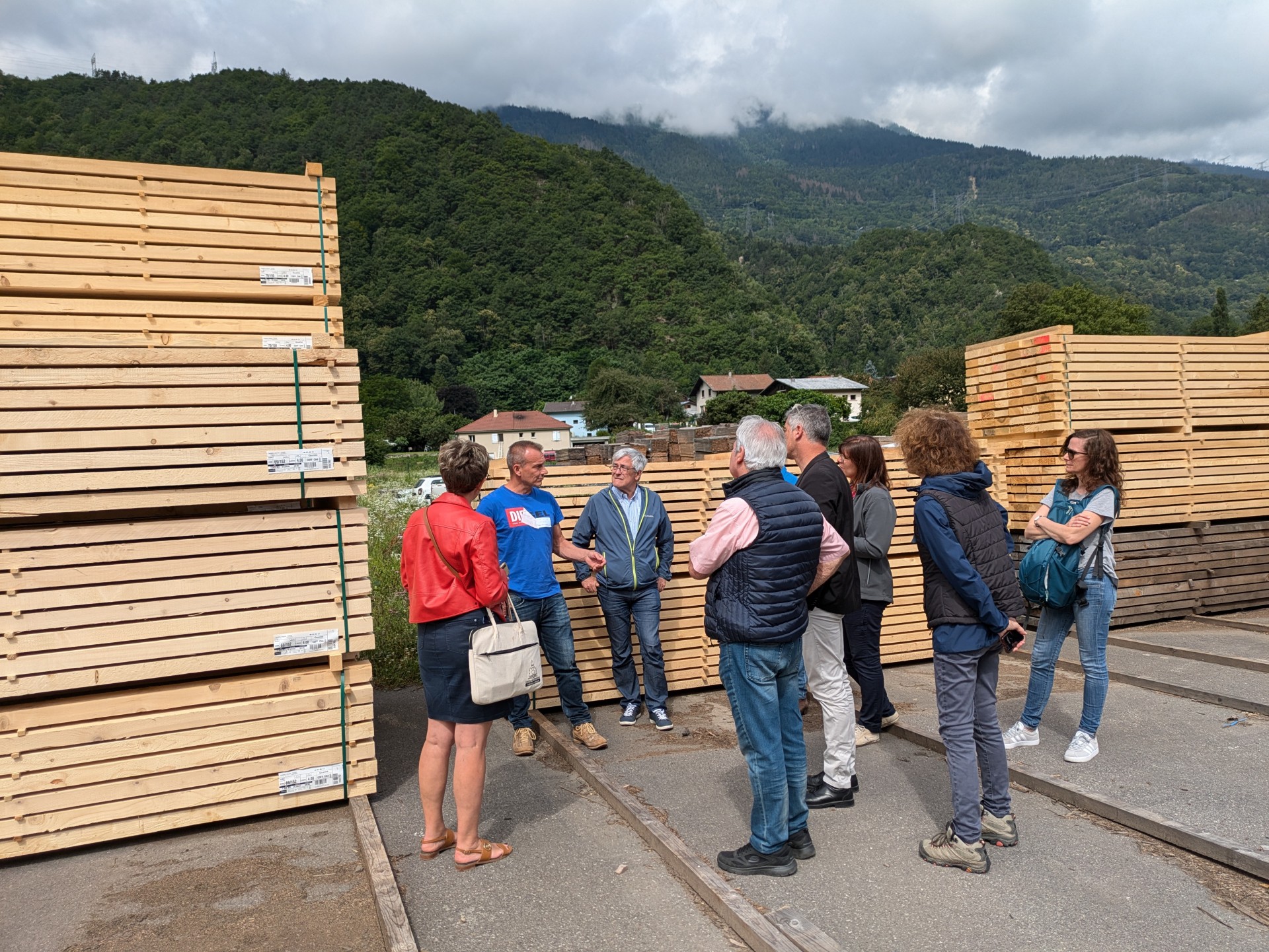 Une visite complète de la scierie a ensuite permis de visualiser concrètement, les moyens évoqués en suivant le parcours réel du bois avec différents outils et process permettant d’assurer la traçabilité du Bois des Alpes dès l’entrée sur le parc à grumes.